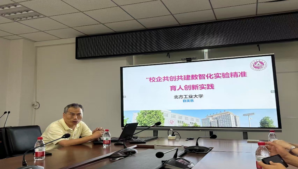 在座谈交流环节,北方工业大学智能学院实验中心主任白文乐教授以“校企共创共建数字化实验精准育人创新实践”为主题,系统介绍了数字化实践教学相较于传统模式的创新优势。他详细阐述了实施方案与投入使用成效,重点展示了实验平台的集成化、可视化与智能化特点:通过整合多种实验设备,有效节约空间与成本;依托实时数据监测与可视化管理平台,教师可在线评阅学生实验报告,实现教学过程精准管控;软硬件协同联动,推动实验流程自动化、操作便捷化,显著提升了实践教学效率与管理水平。