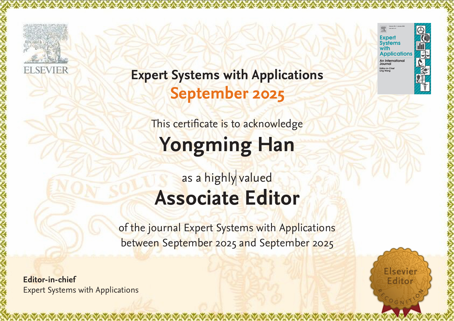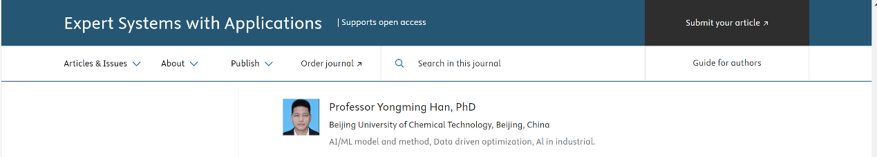 近日,北京化工大学信息科学与技术学院韩永明教授应国际顶级期刊《Expert Systems with Applications》主编、中国清华大学王凌教授邀请,加入《Expert Systems with Applications》编委会,并担任副主编。这一任命,是对韩永明教授在人工智能及智能系统领域杰出科研成果和学术影响力的充分肯定。
