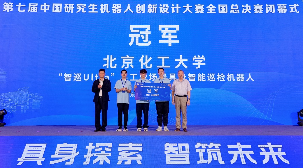 经过两天的激烈角逐,信息学院曹政才教授与张东副教授指导的霍东杰、王梓旭、王登硕、余思滉、闫宇康组成“化安智巡”团队提交的参赛作品《“智巡 Ultra”—工业场景具身智能巡检机器人》获得全国冠军,实现学校在该奖项上零的突破。