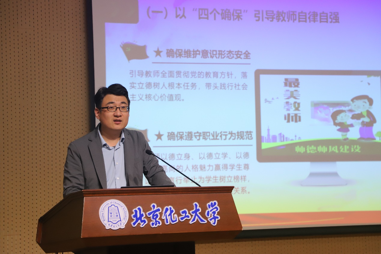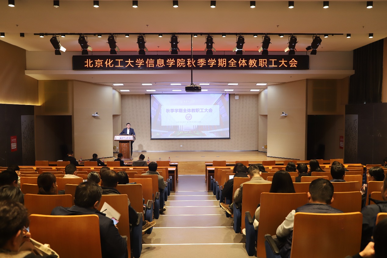 为全面落实北京化工大学 2025 年师德师风建设月活动的相关部署与要求,同步系统梳理近期学院业务重点,提高教职工教学与科研业务水平,共同为推进师德师风建设与学院工作提质增效凝聚共识,2025 年 10 月 24 日下午,信息科学与技术学院全体教职工业务培训会在东区会议中心学术报告厅召开。学院党委书记冯赫主持会议,学院领导班子成员及全体教职工参会。