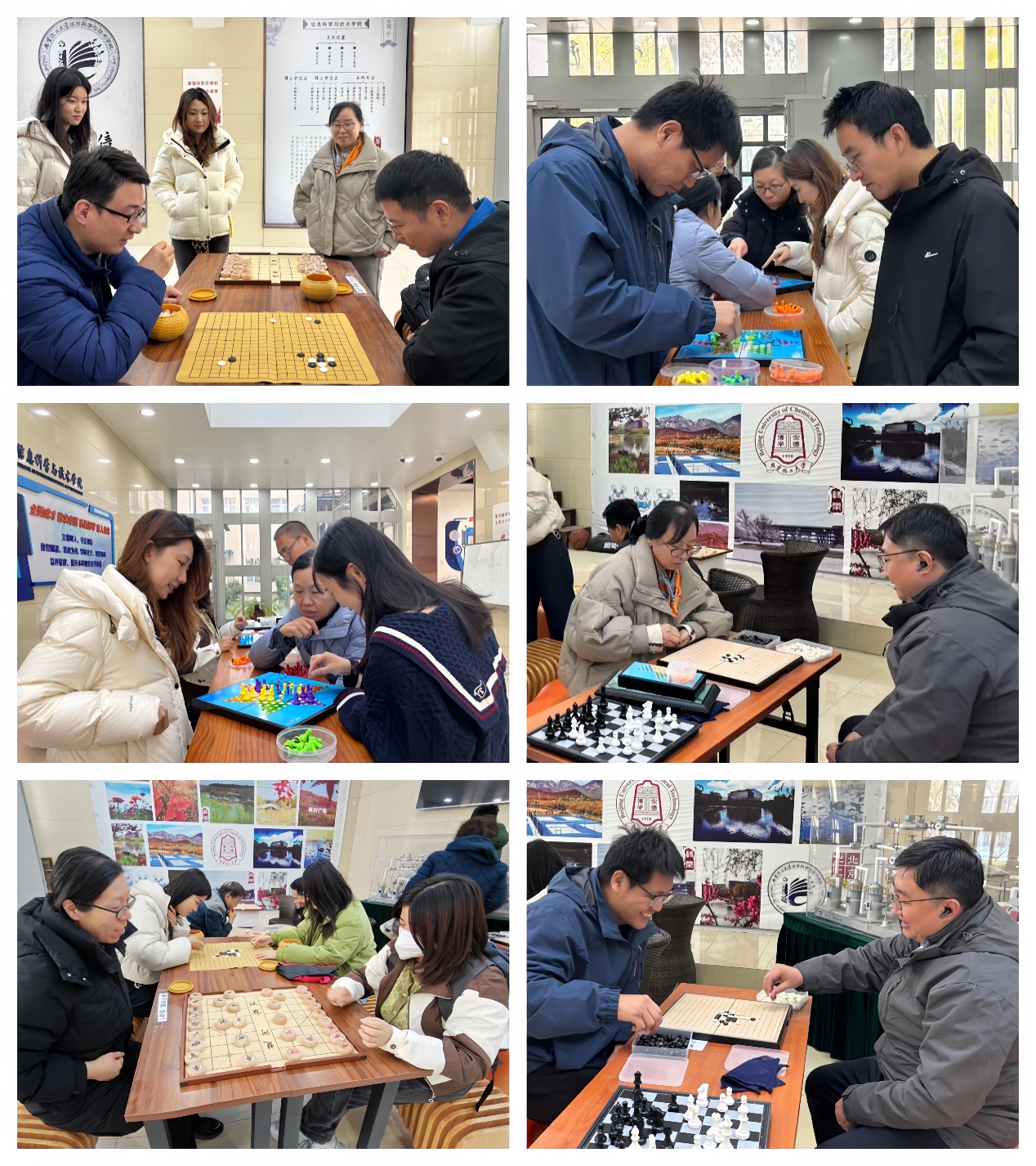 随后,教职工棋牌交流赛正式开始。活动现场设置了象棋、围棋、五子棋、军棋、跳棋等多个赛场,教职工们按照兴趣自由组桌、即刻对弈。象棋桌前,选手们沉着思考,楚河汉界上兵来将挡;围棋盘内,黑白棋子交替落下,每一步都暗藏巧思;五子棋赛场则节奏明快,选手们眼疾手快,胜负在转瞬之间;军棋与跳棋区域更是充满欢声笑语,大家在轻松对弈中拉近了距离。